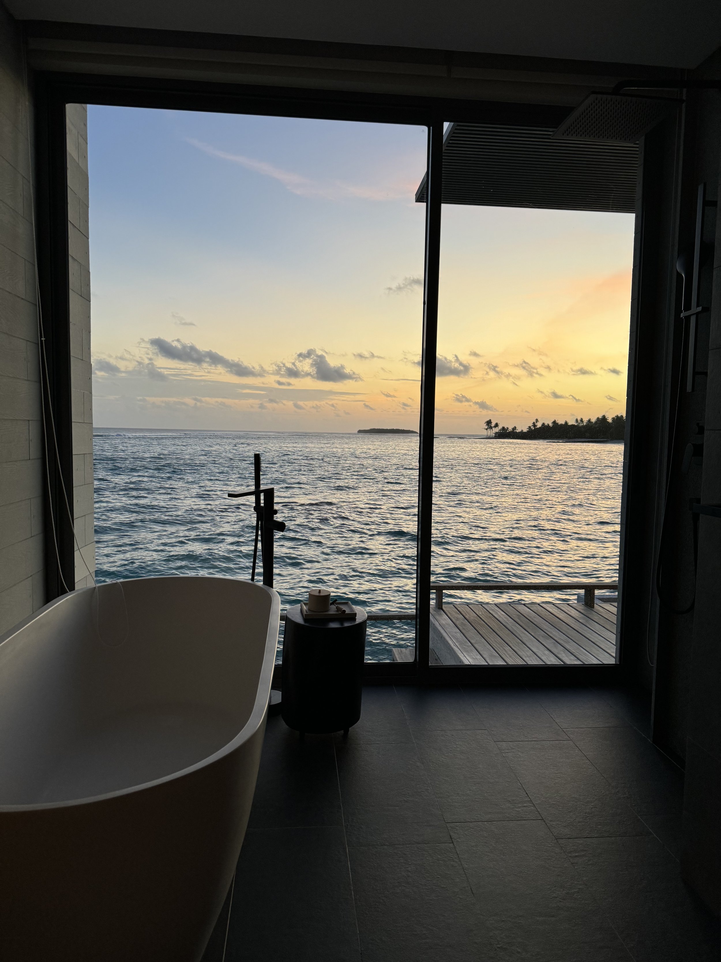As the name implies, the sunset overwater villas have sunset views from the back deck, and even from the bathroom. Beautiful!
