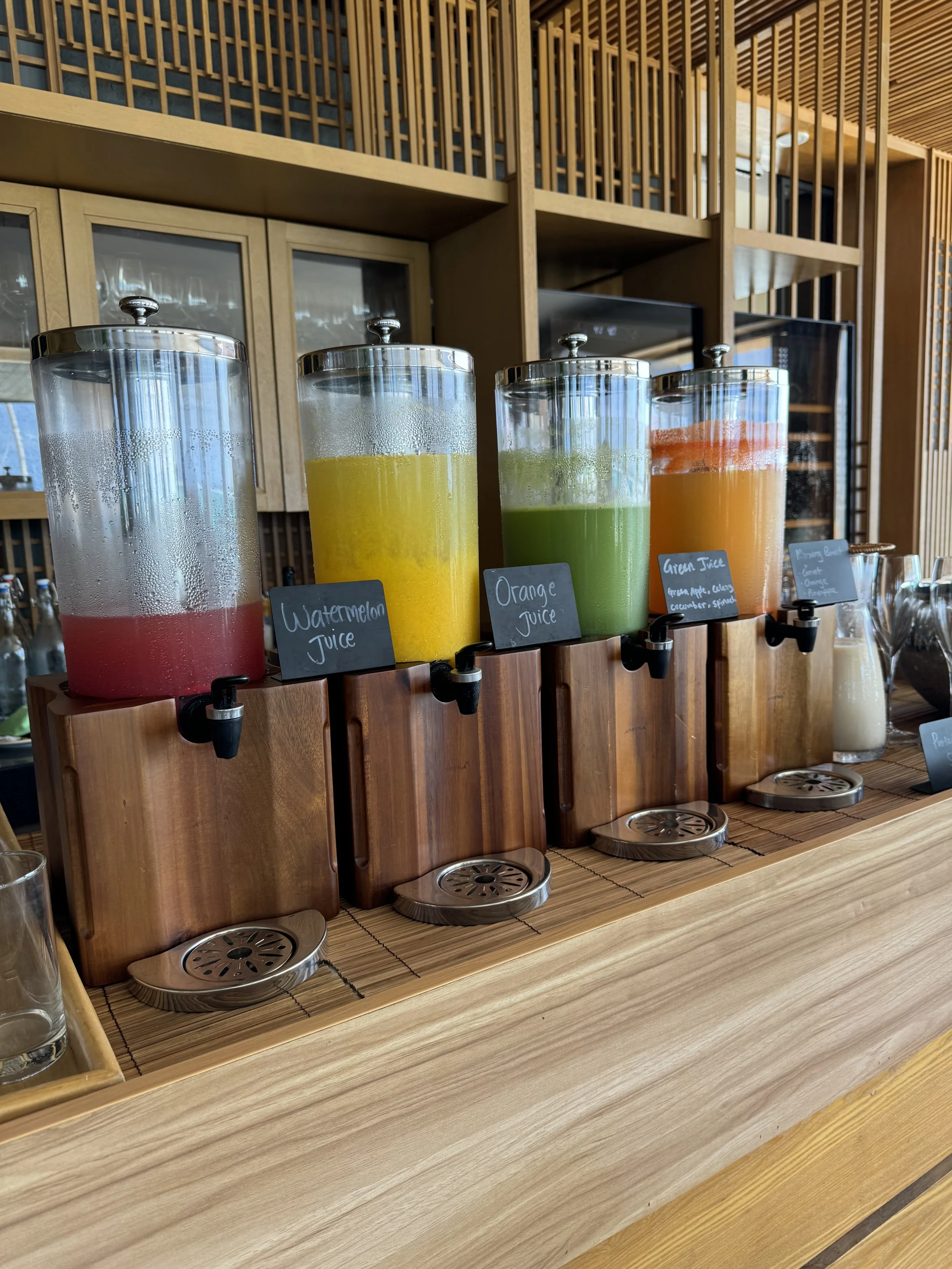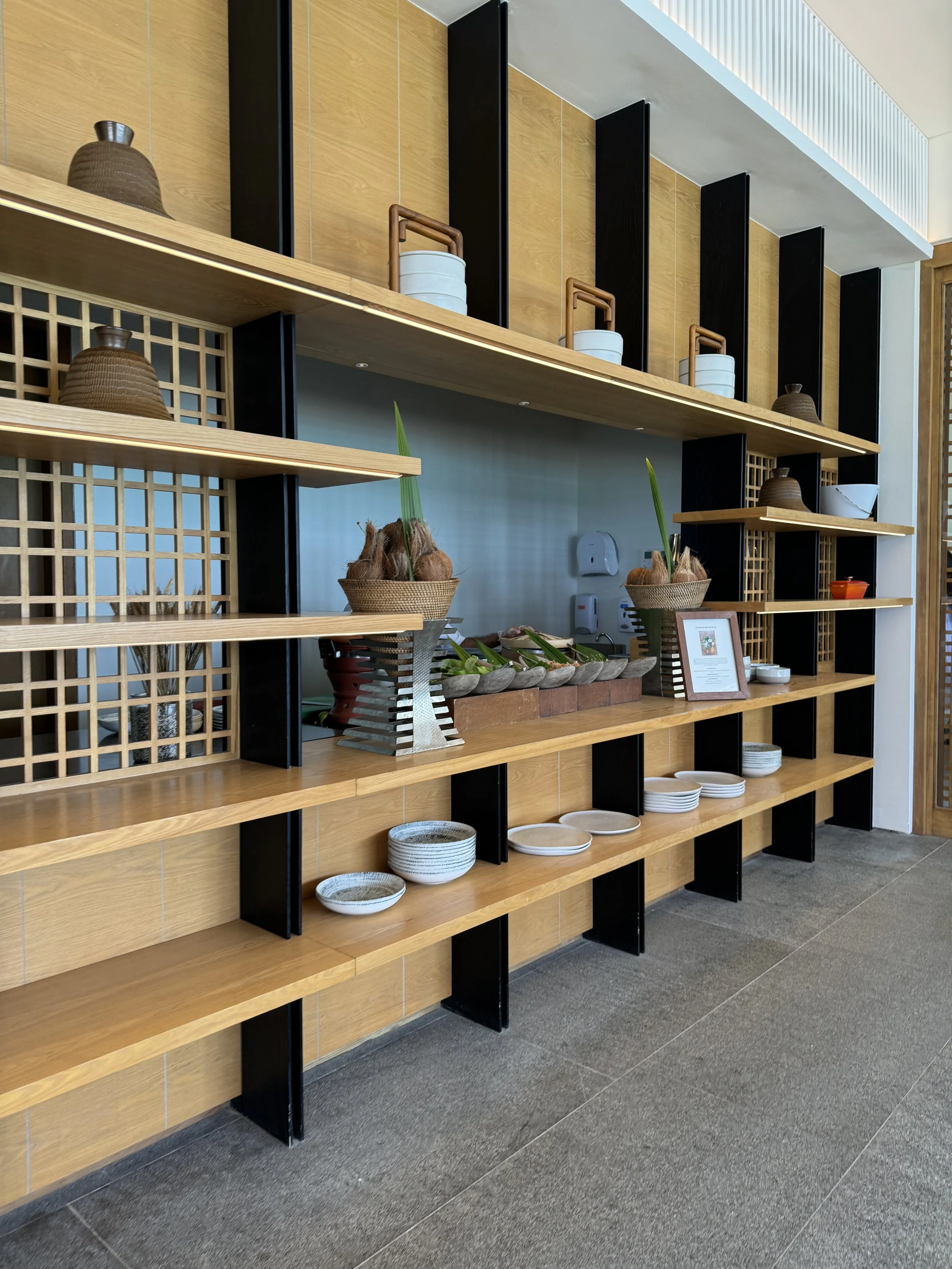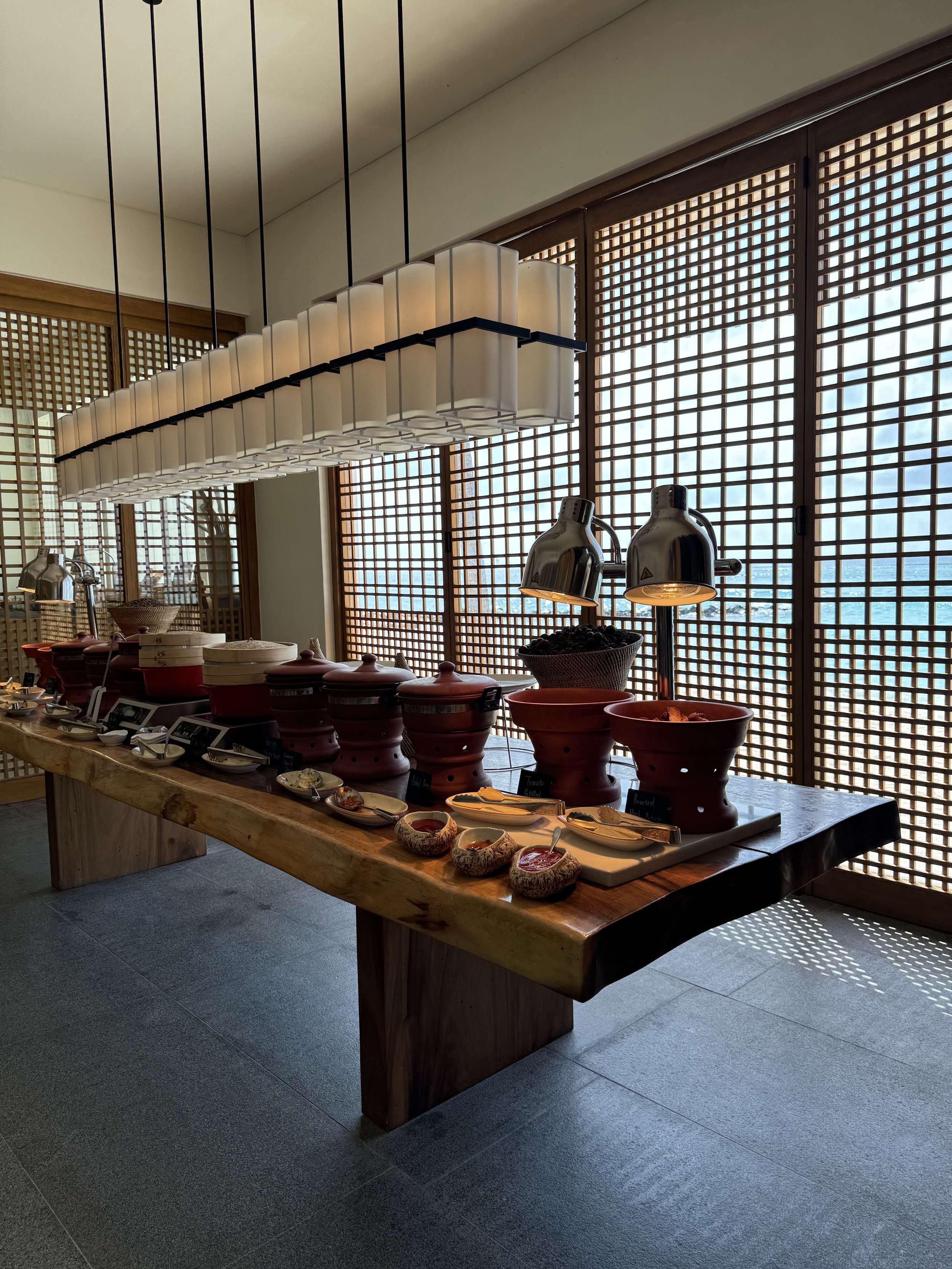 The main restaurant is Seasalt, which is open for breakfast, lunch, and dinner. It is located next to the main infinity pool and the island bar, Mirus Bar. We dined here for dinner one night and had breakfast here every morning. Breakfast is a buffet with a separate menu for a la carte ordering, if desired. Hyatt Globalists do get complimentary daily breakfast, which includes the buffet and anything off the a la carte menu. The buffet selection is quite extensive and the options change daily. This includes a hot station with variety of asian and western foods, a live station where a chef will make fresh dishes, cold station with fruits, deli meats, salads, as well as a pastry station.
