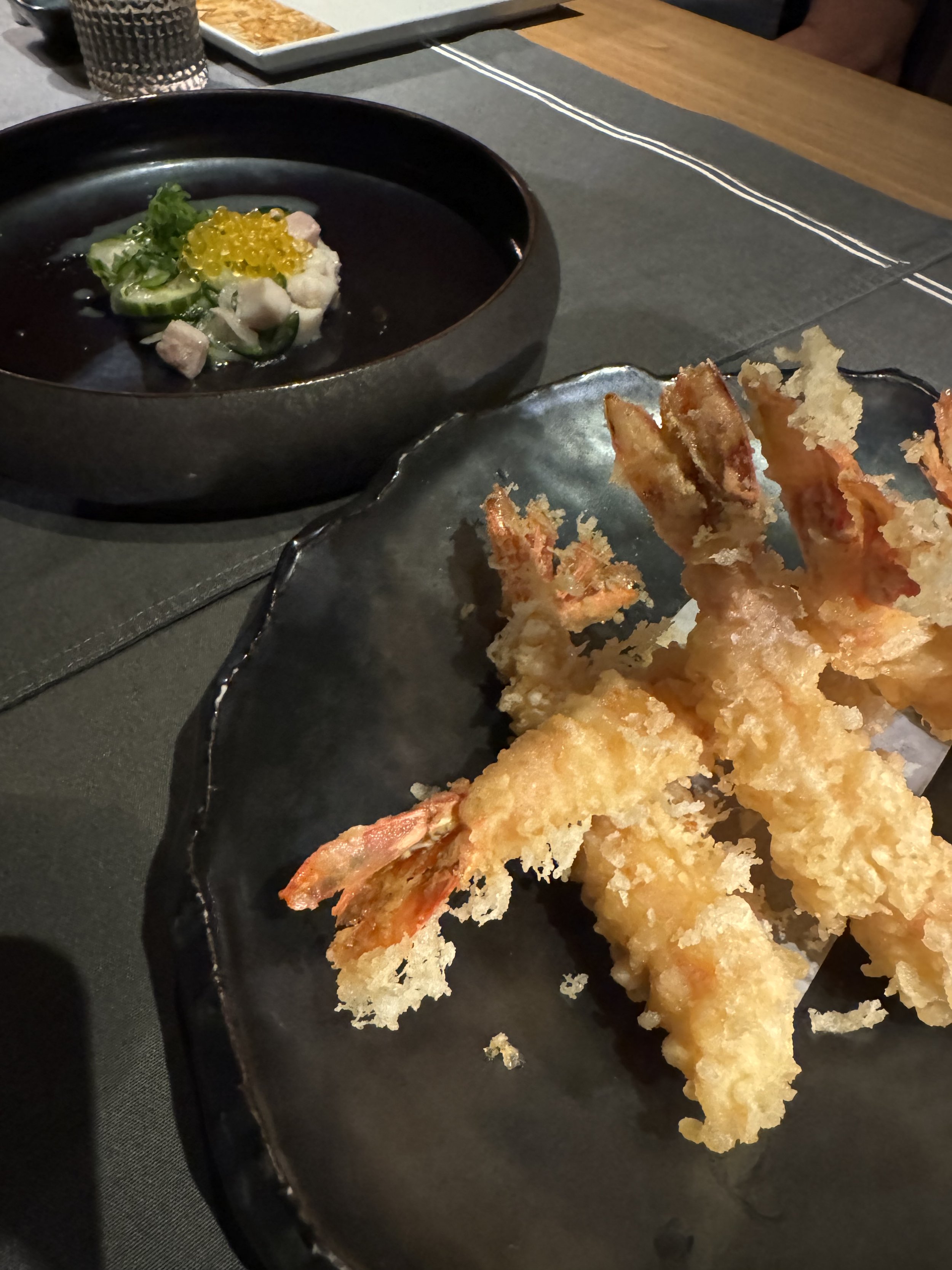 On our last night, we had dinner at Yakitori Bar, which is only open for dinner. As the name implies, they service yakitori, which is Japanese skewered meats and vegetables cooked over a barbecue. You are also able to order various sushi and sashimi plates that they bring over from Umami Restaurant, located right next door. The biggest draw to eating at Yakitori is the location - the small intestine restaurant is right over the water and the walls are able to open completely for amazing views.